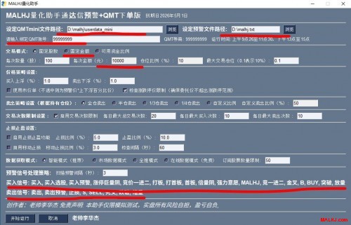 为了减少开盘前的重复输入动作,建议定制属于自己交易方式和交易系统的MALHJ量化助手进行量化自动交易